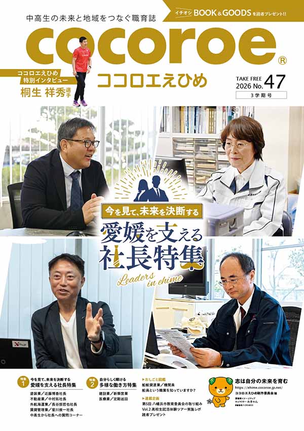今号の特集は『愛媛を支える社長特集』です。3学期という将来の進路を強く意識する時期を迎える中高生に向けて、企業の舵を取る社長の志とビジョンにスポットを当てる特集です。